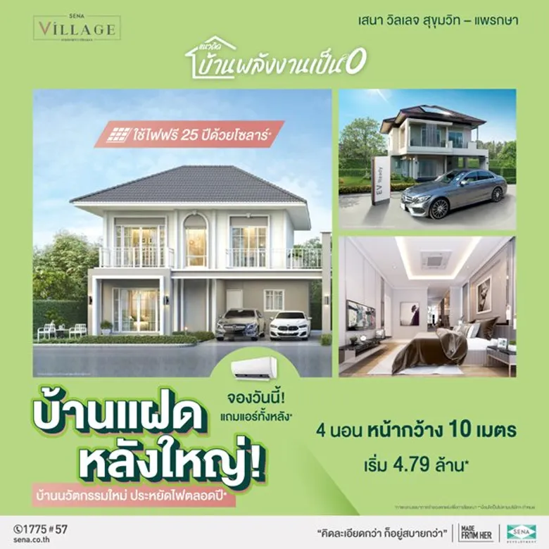 โครงการ เสนา วิลเลจ สุขุมวิท-แพรกษา คุ้มเกินดาด!! ทาวน์โฮมและบ้านใช้พลังงานสะอาดจากโซลาร์เซลล์ เริ่ม 2.6 ลบ.*