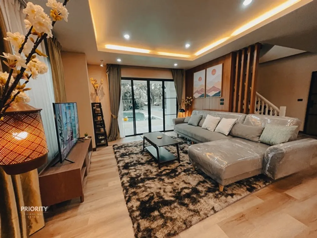 ให้เช่าบ้าน 2 ชั้น อ.สันทราย จ.เชียงใหม่ พร้อมสระว่ายน้ำ 4 ห้องนอน เฟอนิเจอร์ครบพร้อมอยู่ โทร 061-2538544