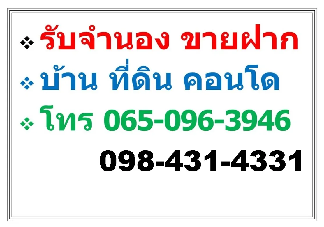 *** รับจำนอง ขายฝาก อสังหาริมทรัพย์ บ้าน ที่ดิน คอนโด