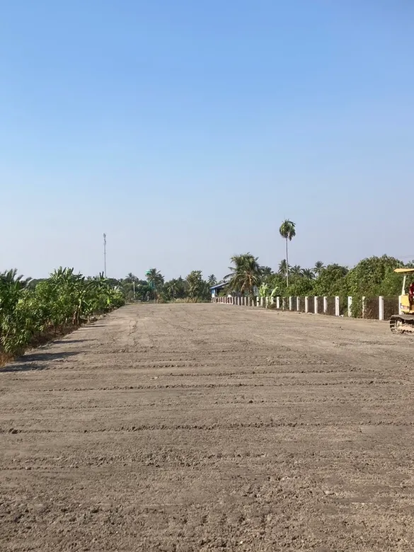 - ที่ดินเปล่าริมแม่น้ำท่าจีน ถมแล้ว มีรั้ว 2ด้าน ฝั่งติดแม่น้ำทำเขื่อนคอนกรีตแล้วเรียบร้อยตลอดแนว ด้านหน้าติดถนนคอนกรีต