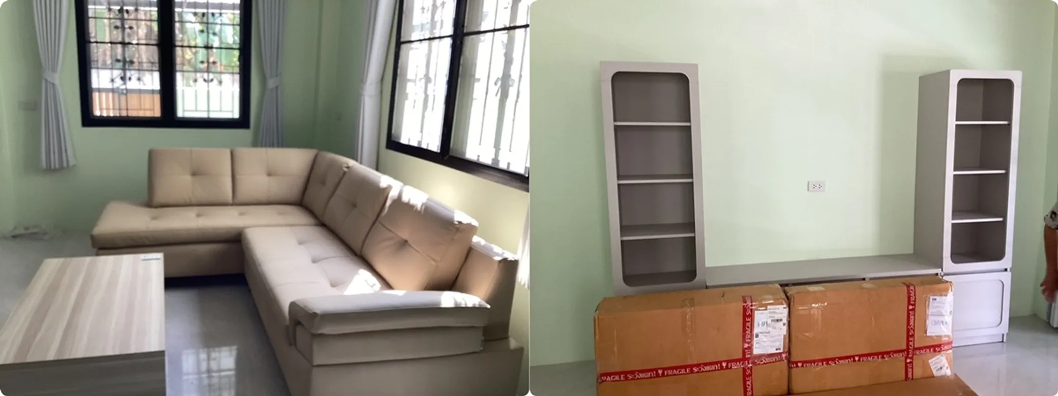 - 3 ห้องนอน 3 ห้องน้ำ, 1 ห้องครัว,1 ห้องโถงใหญ่ เชื่อมต่อห้องทานข้าว