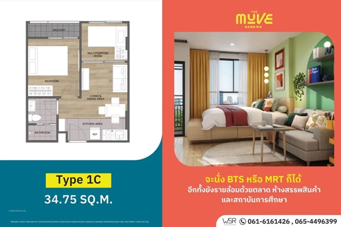 คอนโดใหม่พร้อมอยู่ เดอะ มูฟ บางหว้า เพียง 2 นาที ถึงสถานีรถไฟฟ้าบางหว้า โทร 065-4496399