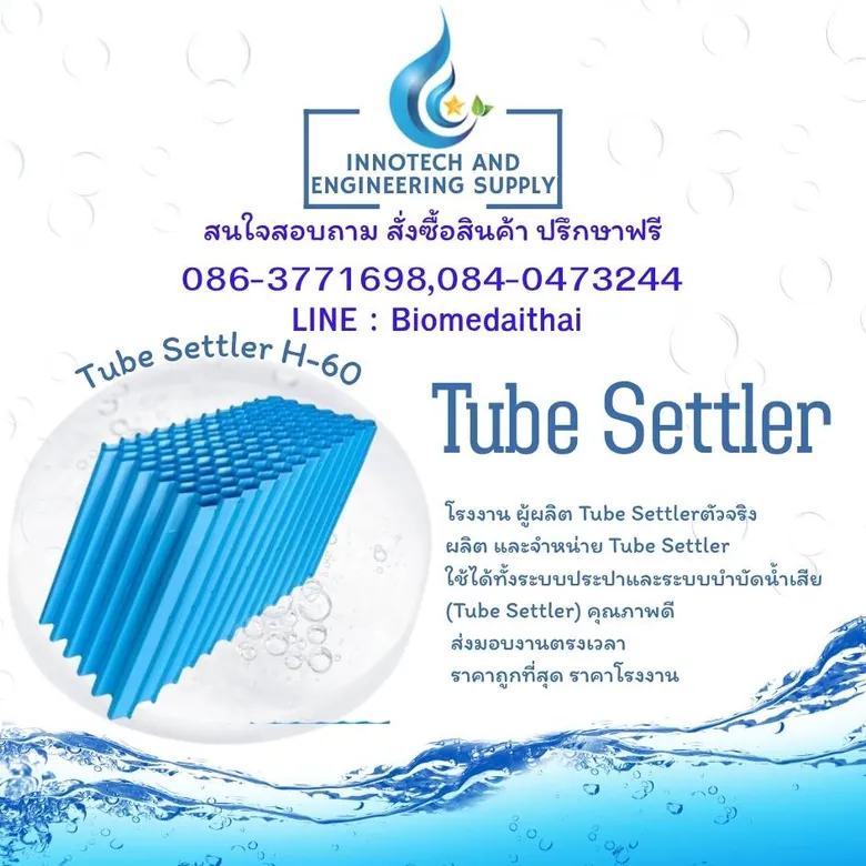 แผ่นช่วยตกตะกอน Tube Settler ประกอบจากพลาสติก RPVC ขึ้นรูป แล้วนำมาประกอบเป็นชุด มีลักษณะท่อเอียงทำมุม 60 องศา เพื่อให้สารละลายที่ปนมากับน้ำดิบ ตกตะกอน ช่วยการตกตะกอนมีประสิทธิภาพมากยิ่งขึ้น ใช้สำหรับการตกตะกอนในระบบการผลิตน้ำประปา การบำบัดน้ำเสีย และการแยกตะกอนออกเป็นน้ำใสในถังตกตะกอนของระบบบำบัดน้ำเสียและระบบผลิตน้ำประปา สินค้าคุณภาพ ราคาโรงงาน จัดส่งทั่วประเทศ, กรุงเทพและปริมณฑล จัดส่งฟรี